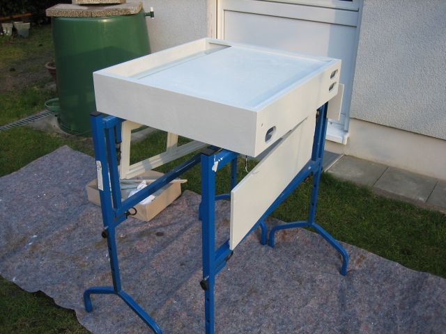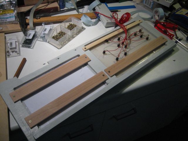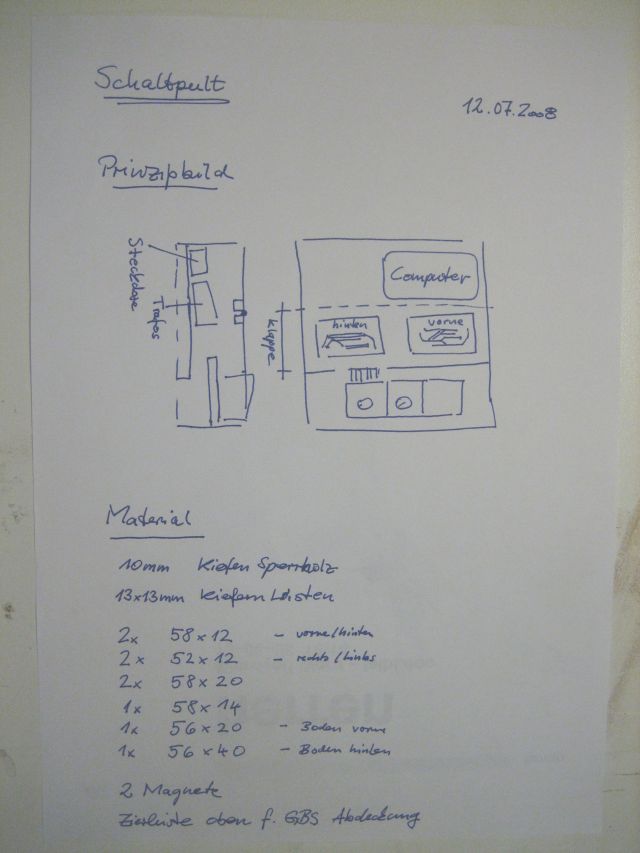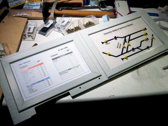 Alles was man brauchte waren ein Stück Plastik-Platte als Träger, ein selbstklebendes Papier auf das man das Stellpult druckt und eine selbstklebende Folie, um ein Verschmutzen zu verhindern. Der Aufbau ging schnell von statten, ca. ein Nachmittag.
