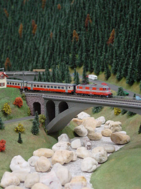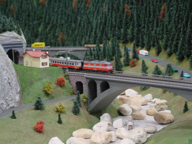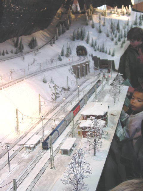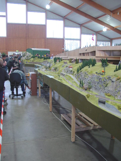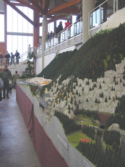 Die Gastanlage aus Leipzig erstreckte sich über die gesamte Länge der Stadthalle. Hier ist der Sankt Gotthard in 'N' nachgebildet! Man beachte die über 51000 Bäume. | |||||||