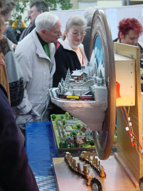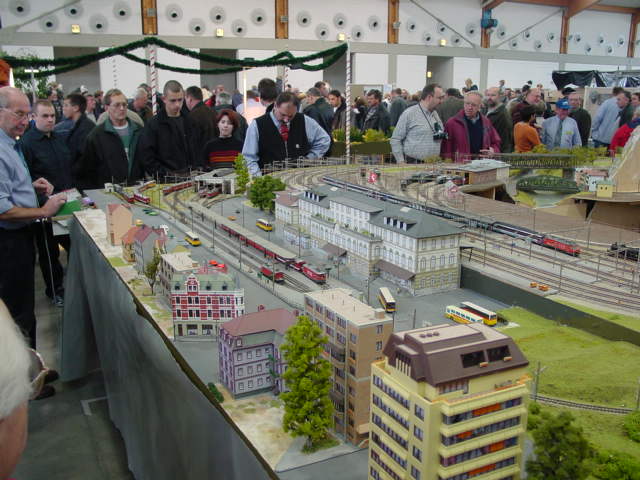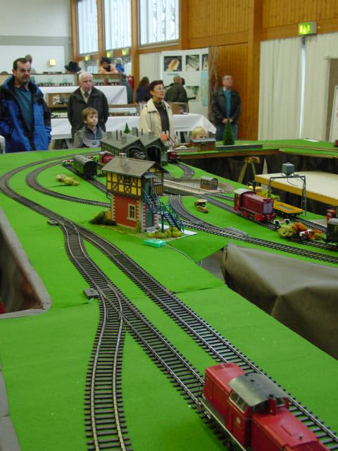 Die nächste Anlage, bestehend aus Modulen, stellt eine Spur 1 Anlage mit Märklin Material dar. In der Stadthalle wirkten die Ausmasse eher bescheiden ... | |||