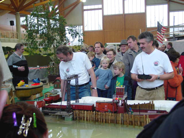 Richtiges Wasser! Und das Fährschiff mit der Fernsteuerung bedienen. Diese Attraktion zog permanent viele Zuschauer. | |||||||
