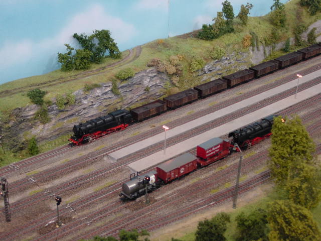 Modulanlage in HO auf Märklin Basis. Gesteuert mit Uhlenbrock Digital. Die passenden Dampfloks mit Geräuschelektronik passten sehr gut. Modelleisenbahn mit Geräuschen, das ist es! | ||||||||