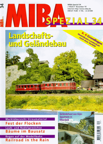 ![]() MIBA Spezial 34 November 97 Landschafts- und Geländebau | ![]() MIBA Spezial 35 Februar 98 Modellbahn unter Spannung | ![]() MIBA Spezial 36 Mai 98 Güterbahn und Ladegüter |