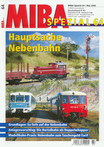 ![]() MIBA Spezial 64 Mai 05 Hauptsache Nebenbahn | ![]() MIBA Spezial 65 August 05 80 Jahre Einheitsloks | ![]() MIBA Spezial 66 November 05 Modellbahn-Einstieg |