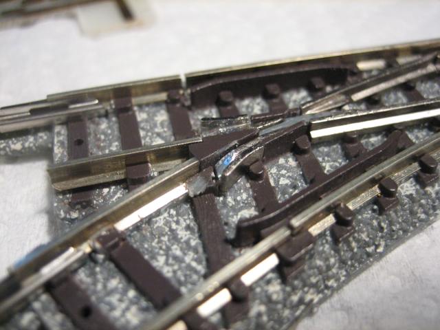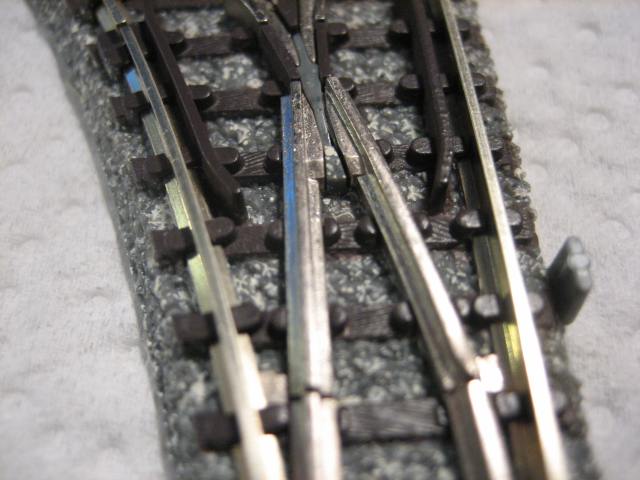 Die TOMIX Weichen haben leider in einer Richtung eine Stufe. Dort bleiben meine KATOs leider auf Fahrstufe 1 hängen. Interessanterweise gibt es diese Stufe in der anderen Richtung nicht. |